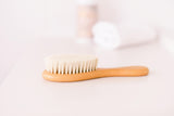 Our baby brush is made with natural beech wood and has beautifully soft wool bristles.